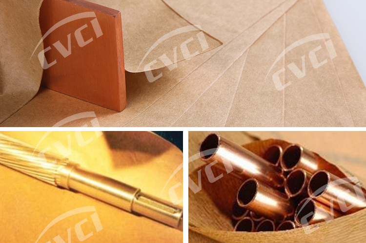 將VCI(氣相緩蝕劑)含浸與平紋或皺紋中性原紙上起到防銹目的,在中性原紙上可通過(guò)復(fù)合PE層起防水防潮目的。