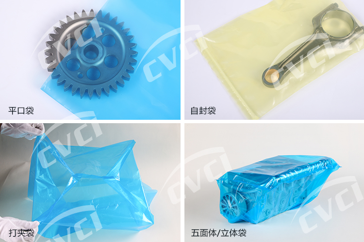 由多金屬用氣相防銹母粒與LDPE樹脂擠出吹塑制成。對黑色金屬及銅、鋁等多種金屬具有良好的防銹功能。